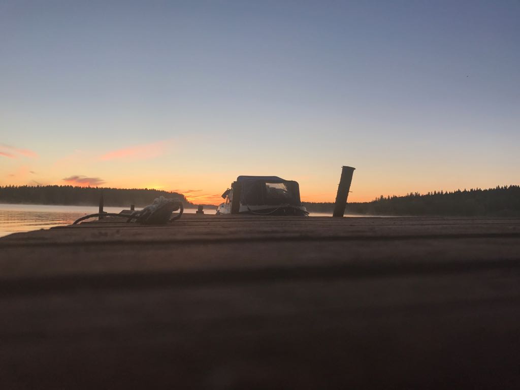 Keskikesän ehdottomasta lomailuviikonlopusta nautittiin ainakin Keski-Suomessa melko tuulisessa ja koleassa säässä. Matkasuunnitelmat muuttu prätkäreissusta autoiluun (mutta saipa sylillisen raparperia roudattua takaisin), uin kaikesta huolimatta, veneelläkin pääsi ja altistuin hulahula-hommiin vahingossa.