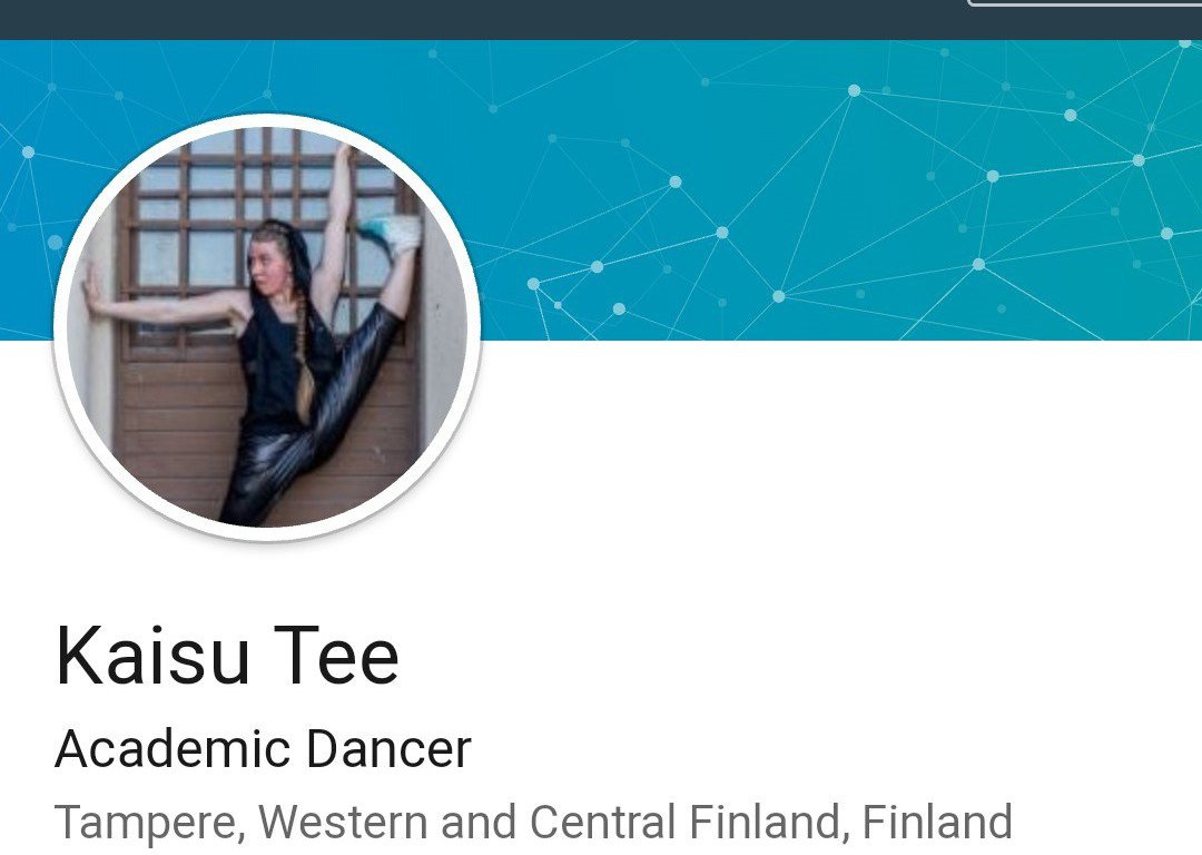 LinkedIn on suosittu ja pitkään kasvussa ollut verkostoitumis- ja työnhakualusta etenkin akateemisilla ja teknisillä aloilla. Sieltä löytyy kuitenkin yhä enemmän myös esimerkiksi taidealojen tekijöiden profiileja. Mä päätin joitain vuosia sitten jakaa oman osaamiseni kahteen profiiliin, jotta työnantajalle ja mahdollisille yhteistyökumppaneille mahdollistuu relevantin työhistorian näkyminen kerralla. Luonnollisesti profiilit on linkattu toisiinsa. Moni viestintäpuolen duunikin nimittäin on ihan asiallinen myös tanssitöiden kannalta. Sillä puolella kun saa tehdä monitoimihenkilönä lavalta julisteisiin hommia.