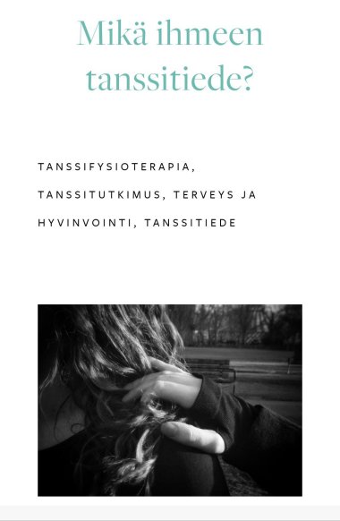”Intohimoinen tanssin ja hyvinvoinnin ammattilainen, fysioterapeutti, tanssija ja tanssitieteilijä, maailmankansalainen ja onnellinen ihminen.”